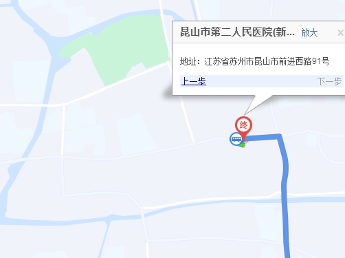 步行480米 昆山南站 步行 280米 昆山南站上車 昆山3路 末班發(fā)車22:30 13站 第二人民醫(yī)院站下車 步行 210米 昆山市第二人民醫(yī)院(新院區(qū))